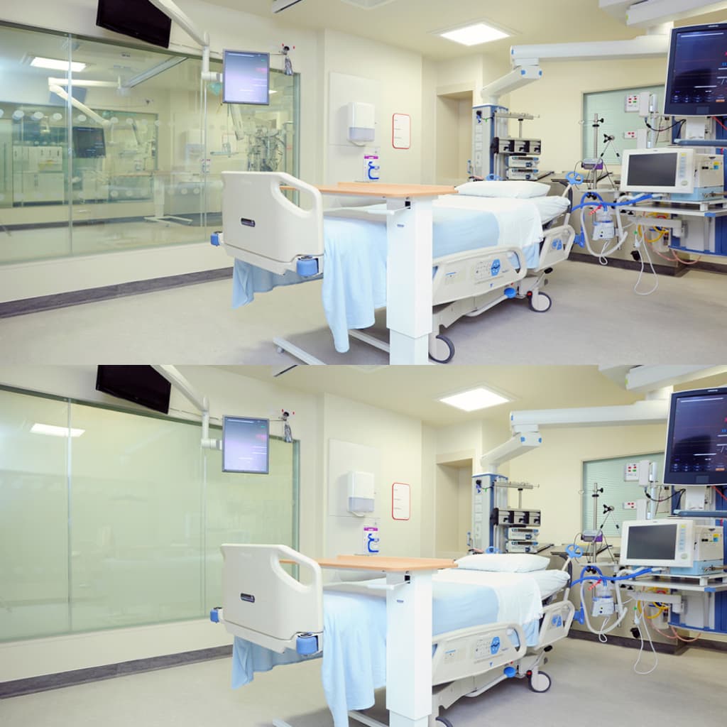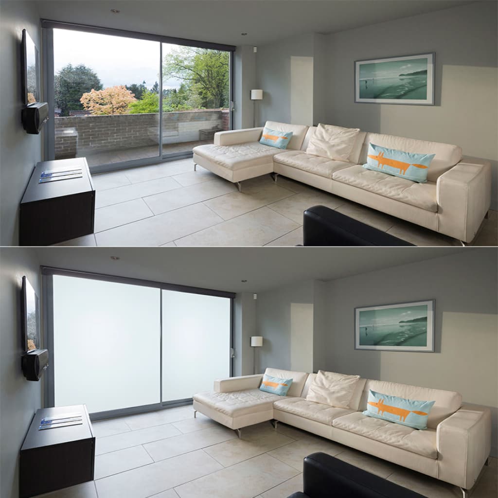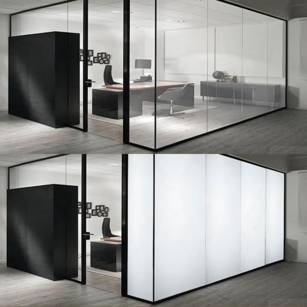 Em caso de queda de energia, o smart film retorna automaticamente ao modo opaco, garantindo a privacidade do ambiente.